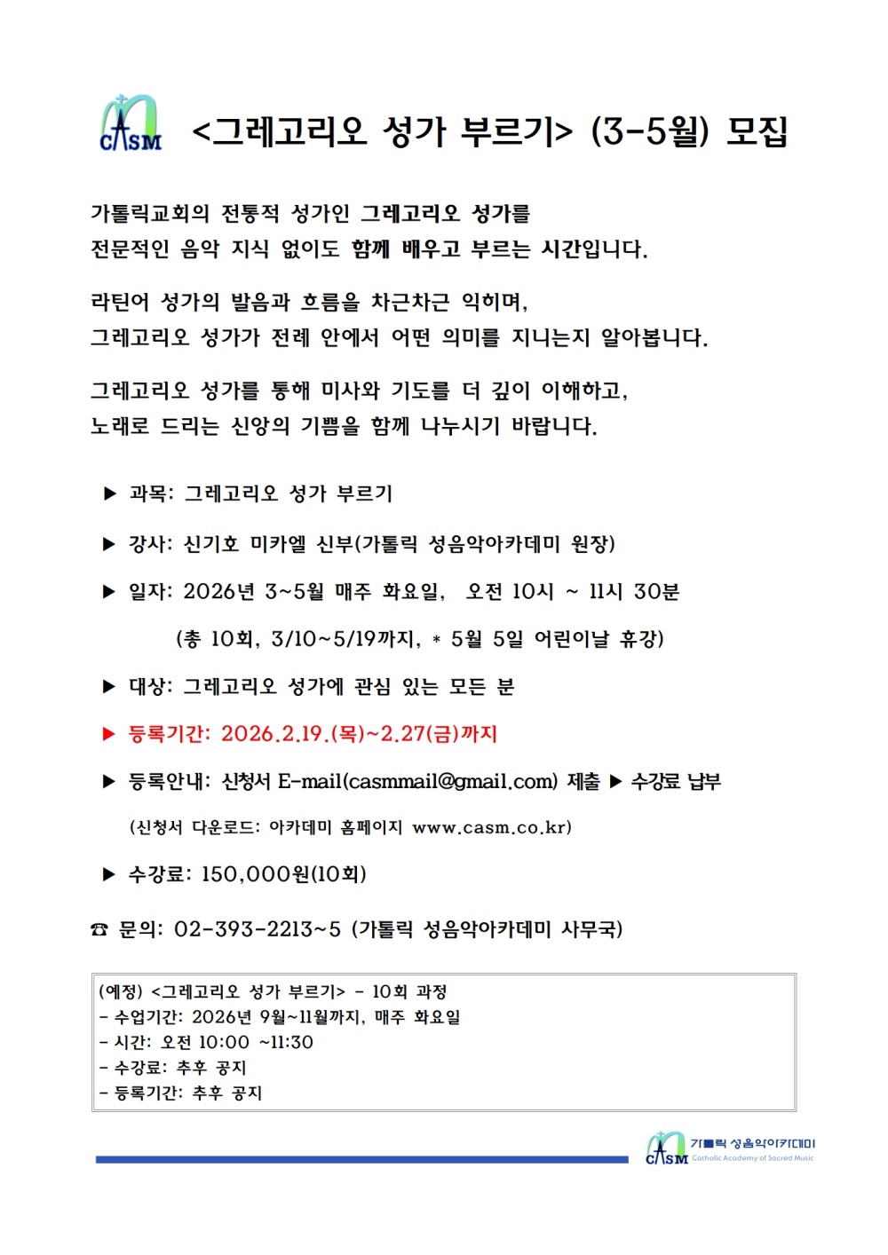 [마감] 그레고리오 성가 부르기(3-5월) 모집 아카데미관리자 0 364 02.02 12:07 2026.02.02 12:07 양식아카20-12 성음악아카데미 특강 참가 신청서그레고리오 성가 부르기, 3-5월.hwp (61.0K) + 51 2026.02.02 12:07 양식아카20-12 성음악아카데미 특강 참가 신청서그레고리오 성가 부르기, 3-5월.pdf (80.7K) + 32 * 애플(아이폰, 아이패드, 맥북 등)기기 이용시 : Safari 브라우저에서는 신청서 다운로드가 안될 수 있사오니, Chrome을 이용하여 주시기 바랍니다.